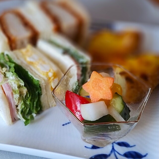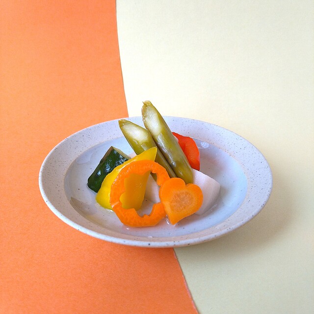 心がウキウキするような、色とりどりのお野菜の甘酸っぱいピクルスです。