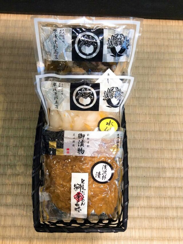 料亭風味30日(冷蔵)、水仙15日(冷蔵)、しば漬90日(常温保存可、開封後は冷蔵)