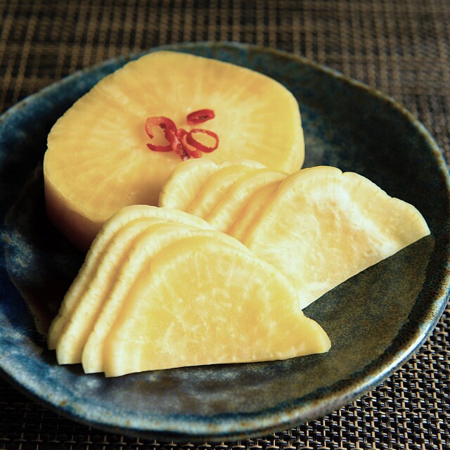 TOPその他漬物 大根のお漬物 大根を黒豆から作る”黒豆醤油”につけた、甘辛いくせになるお味です。 サイコロにカットし歯ごたえを楽しむ、または薄切にして、様々な食感をお楽しみいただけます。 薄くスライスし、チーズをくるくる巻いてもおいしく召し上がれます。 白ワインにも合う漬物です。 冷蔵品 内容量 :180g 賞味期限:製造より15日 ※日本橋三越本店にてお取り扱いあり 甘辛後ひく 大根黒豆しょうゆ漬 価格: ¥496 (税込) 販売期間: 数量: 袋 在庫: ○ 在庫 ○ 返品についての詳細はこちら 他にもこんな商品がございます 人気NO.1! 昆布〆大根 ¥615(税込) 数量:0123456789101112131415161718192021222324252627282930 本 定番のゆず大根 水仙 ¥496(税込) 在庫  ○ 数量:0123456789101112131415161718192021222324252627282930 袋 お気軽にお手軽にかわいく vege pickA(ベジピッカ)〜あたみレモンだいこん〜 ¥540(税込) 在庫  ○ 数量:0123456789101112131415161718192021222324252627282930 袋