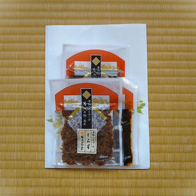 1袋432円(葉唐辛子、葉唐昆布、しじみ、黄金でんぶ、生炊きあみ、切いか、細切昆布)