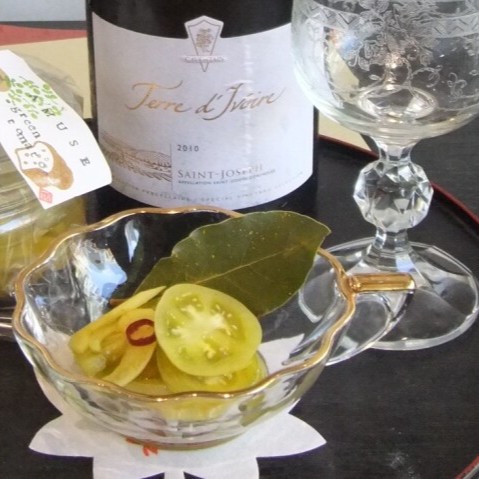 赤くなる前の緑のトマトを軽く塩漬けし、シャリシャリ、サクサクの食感を残したまま、